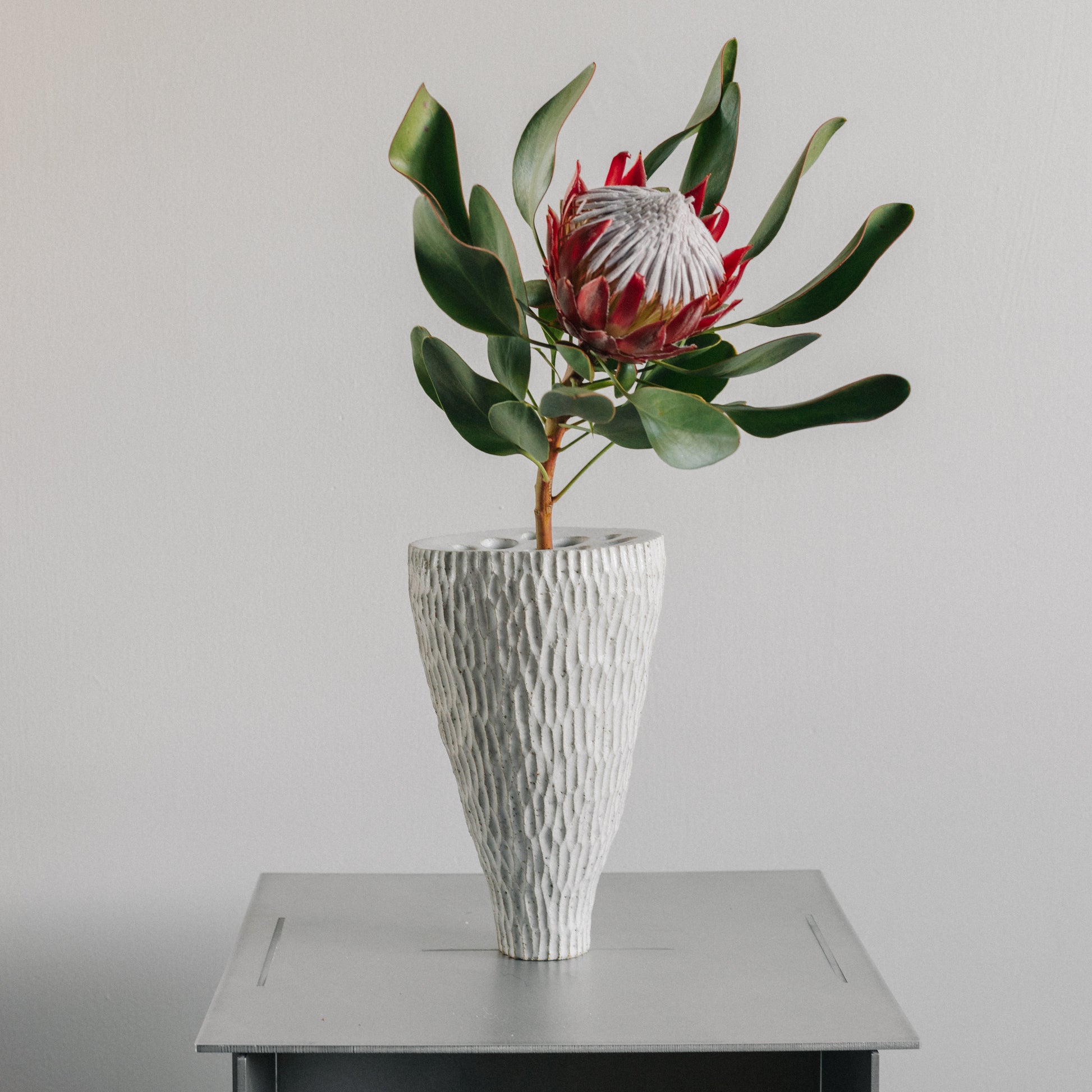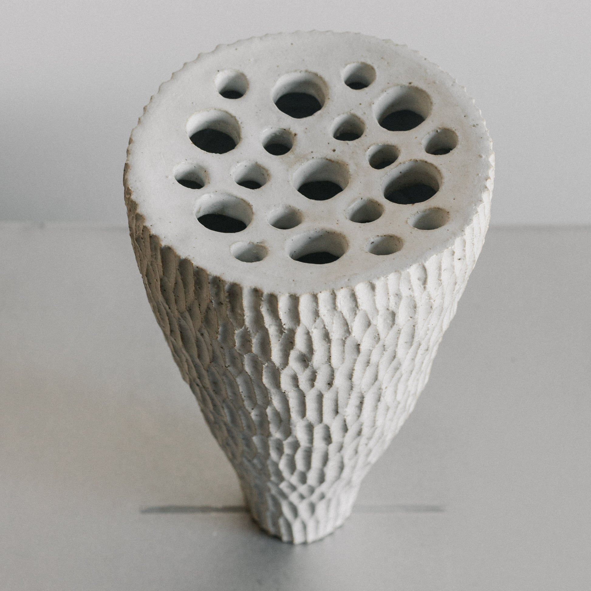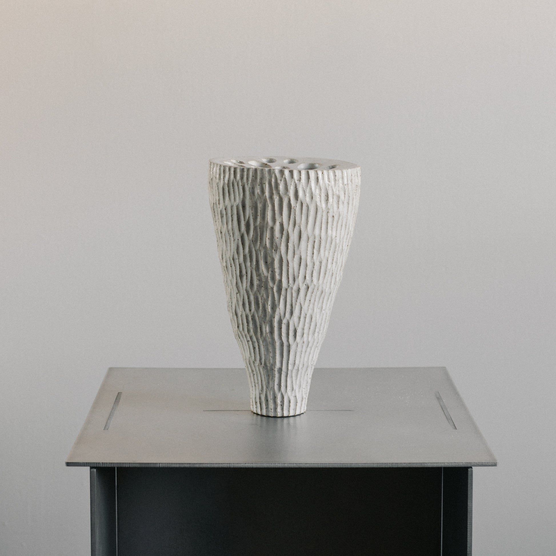 Inspired by natural textures and the philosophy of modern ikebana, this vessel invites a tactile exploration of form and feeling. Its surface carries texture that nods to the natural world - abstract yet familiar. The top includes openings designed to support medium sculptural stems and encourage thoughtful arrangements.