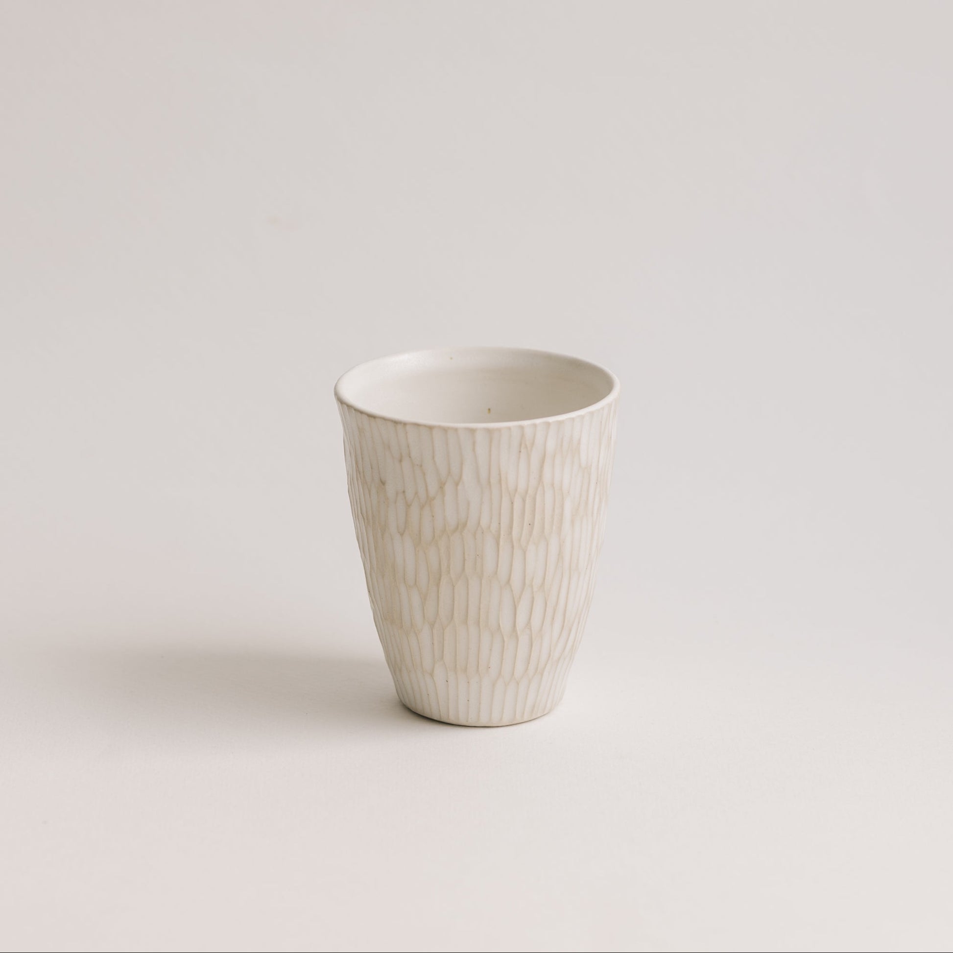 Designed for mindful sipping, the Ren tumbler is a tactile vessel perfect for tea, coffee, or a moment of stillness. Each tumbler is hand-carved, with subtle patterns that vary slightly, making each piece one of a kind.