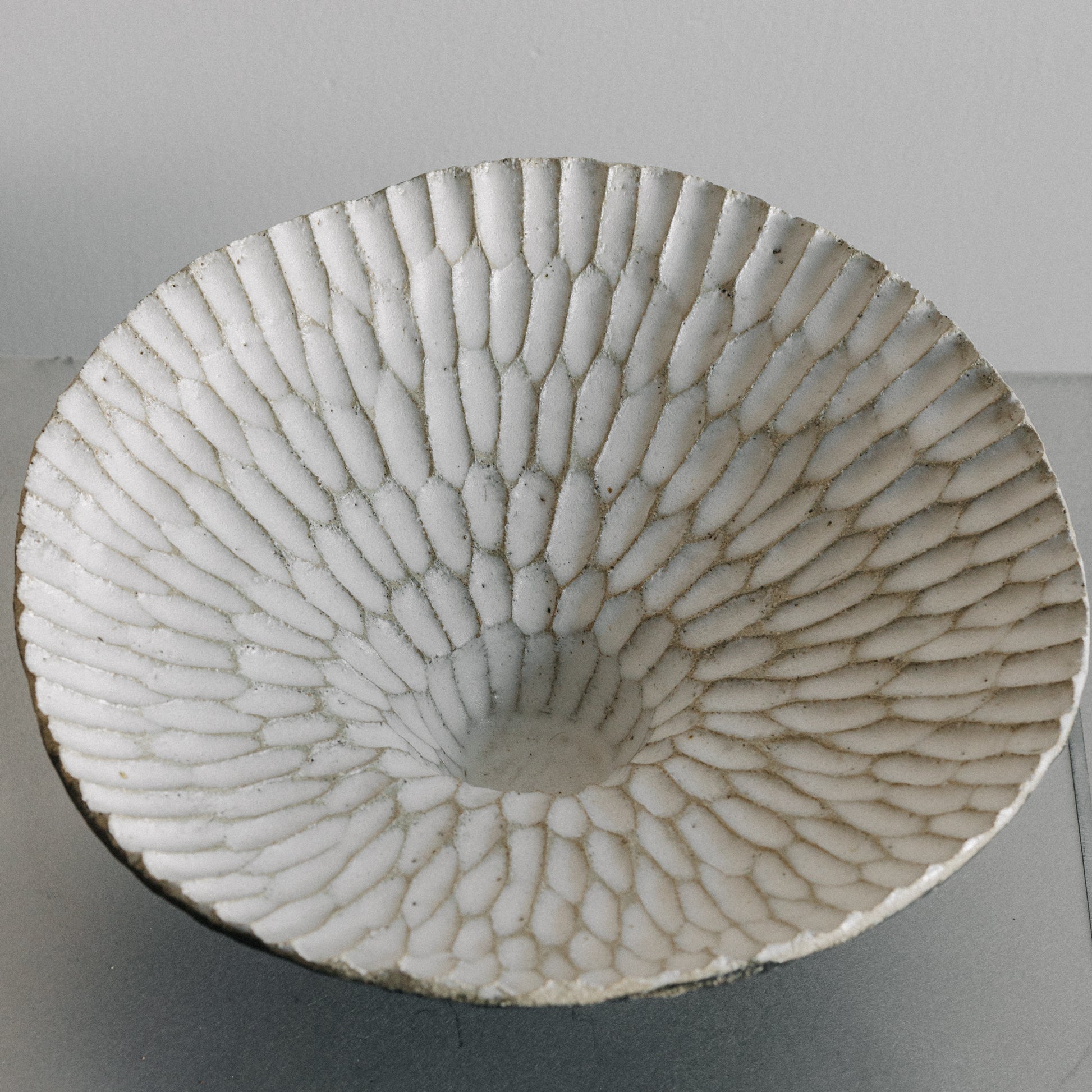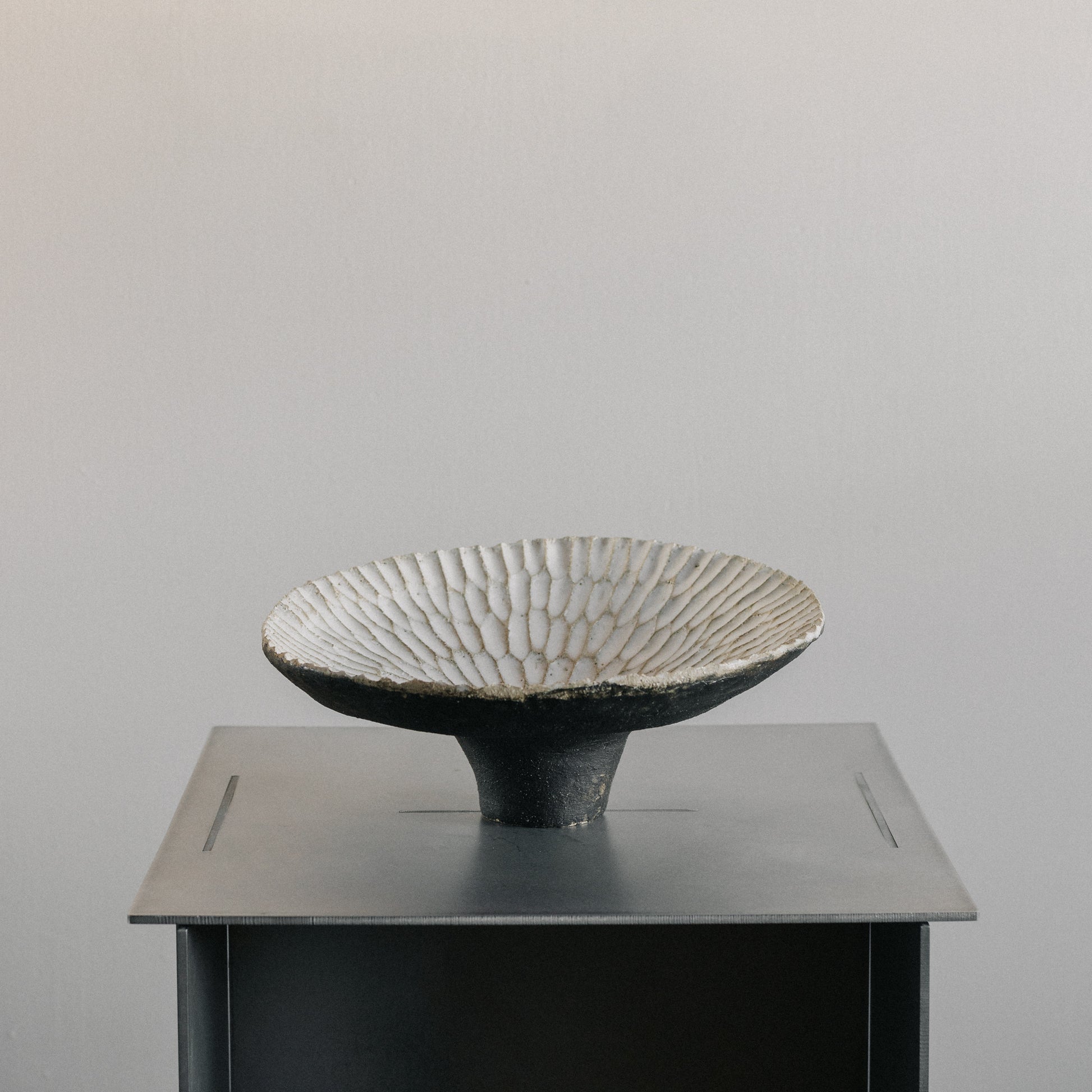 Its shape and surface carries texture that nods to the natural world - abstract yet familiar. These bowls are decorative or can be used with a 40mm kenzan/flower frog and encourage thoughtful arrangements.